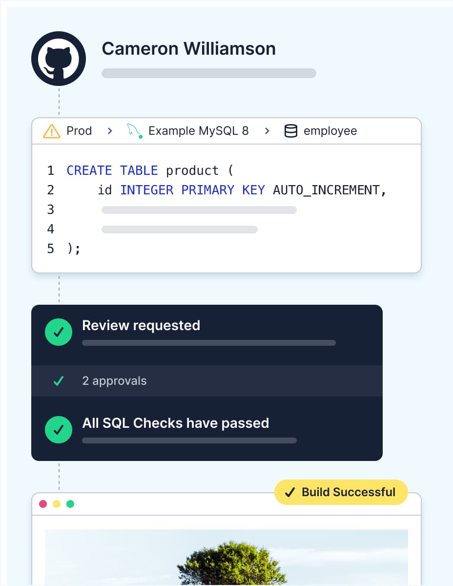Learn moreBytebase streamlines database change deployment from non-prod to prod with review workflow, rollback, and optional GitOps integration.