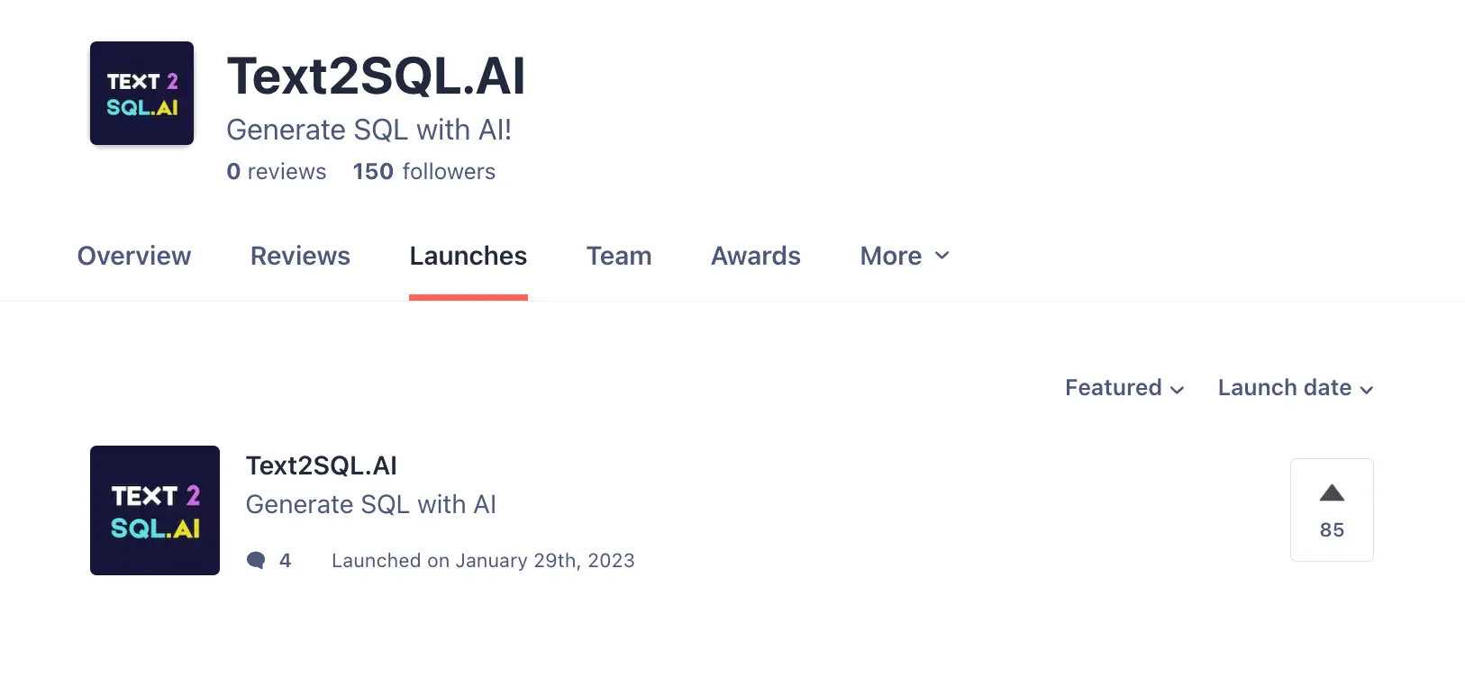 AI products are all over the place this year, but Text2SQL.AI was the #1 Product of the week in the AI category on Product Hunt when it was released.