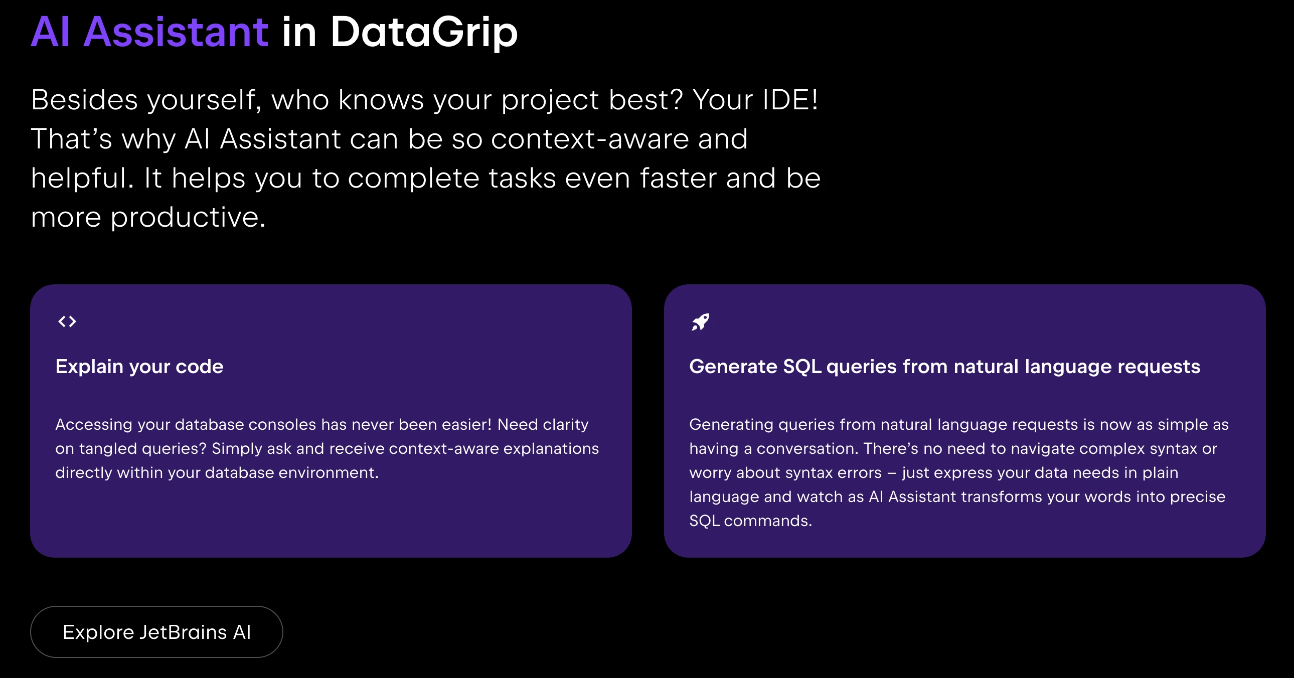 JetBrains introduces an AI Assistant to its flagship SQL client DataGrip.